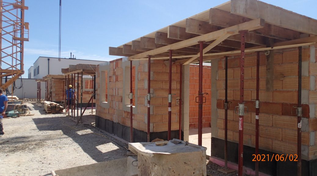 Herstellung Flachdach, Fertigstellung Zwischenwände, Beginn Stemmarbeiten