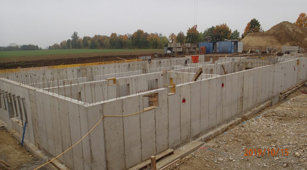 Kranaufstellung, Herstellung Fundamente und Kellerwände