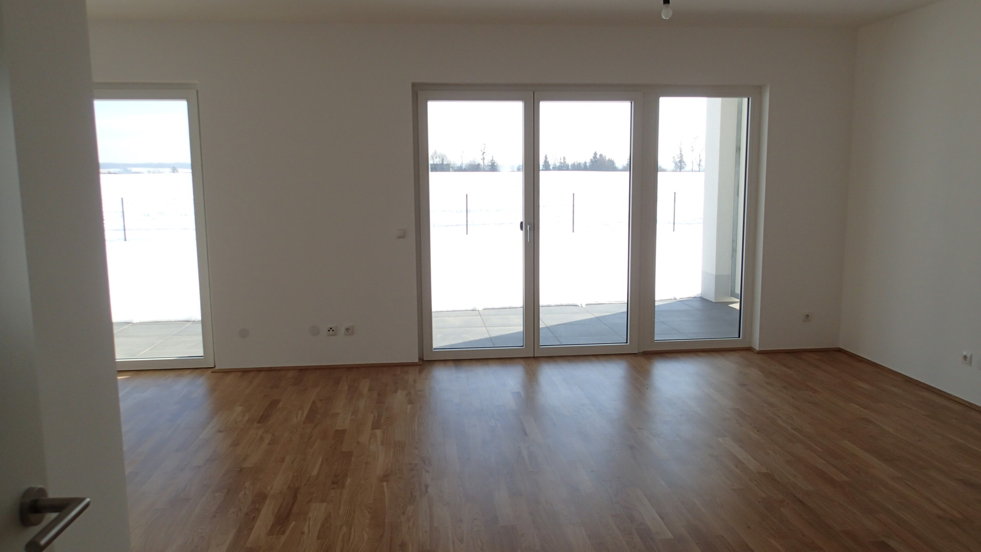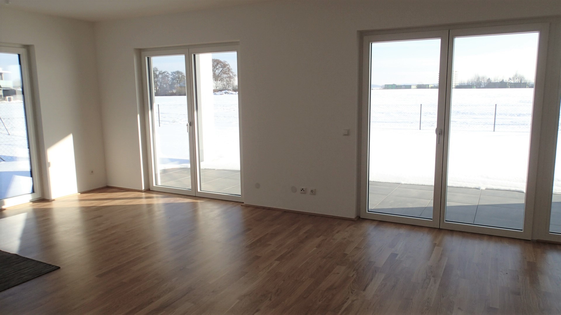 Die überdachte Terrasse mit anschließendem Eigengarten ist nach Süden zum angrenzenden und unverbaubaren Grünland ausgerichtet. Ebenso gehört an der Ostseite ein Grünstreifen zu dieser Wohnung, damit Sie von allen Räumen in Ihren eigenen Gartenbereich gelangen können.